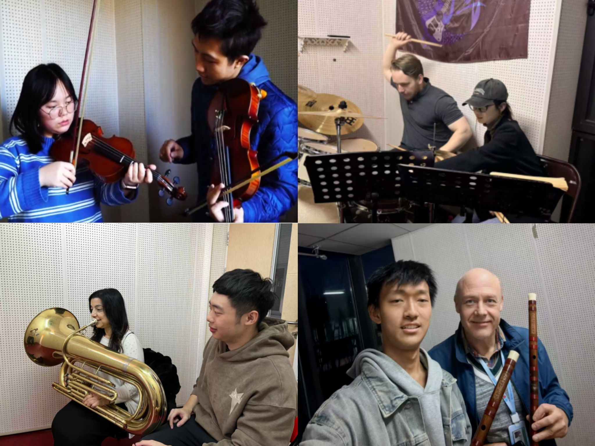 艺术培训中心选拔具有艺术特长学生担任教员,面向校区师生开放报名,外籍教师亦可参与交流,推行双向教学模式促进多元文化艺术切磋。开设吉他、钢琴、架子鼓、键盘、电吉他、贝斯、古筝、戏曲、二胡、录音混音、声乐、乐理基础等课程,覆盖西洋器乐、民族器乐、声乐及艺术理论,满足不同师生艺术学习需求。