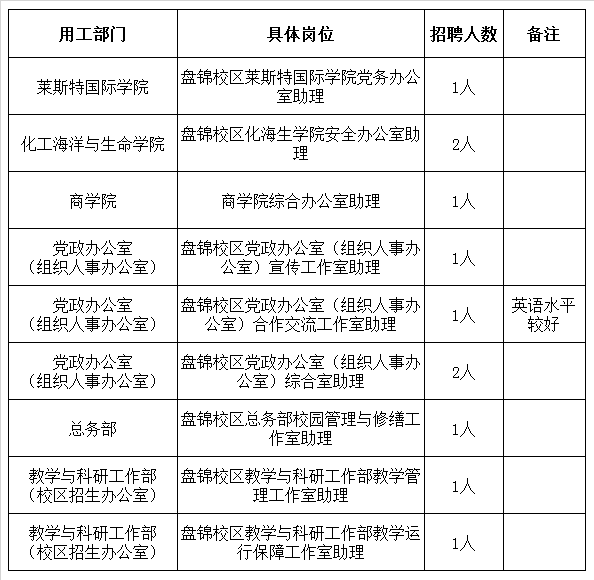 关于开展盘锦校区2024-2025学年春季学期部分勤工助学岗位补充招聘工作的通知