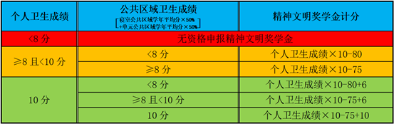 六、精神文明奖学金个人卫生成绩换算如下表所示