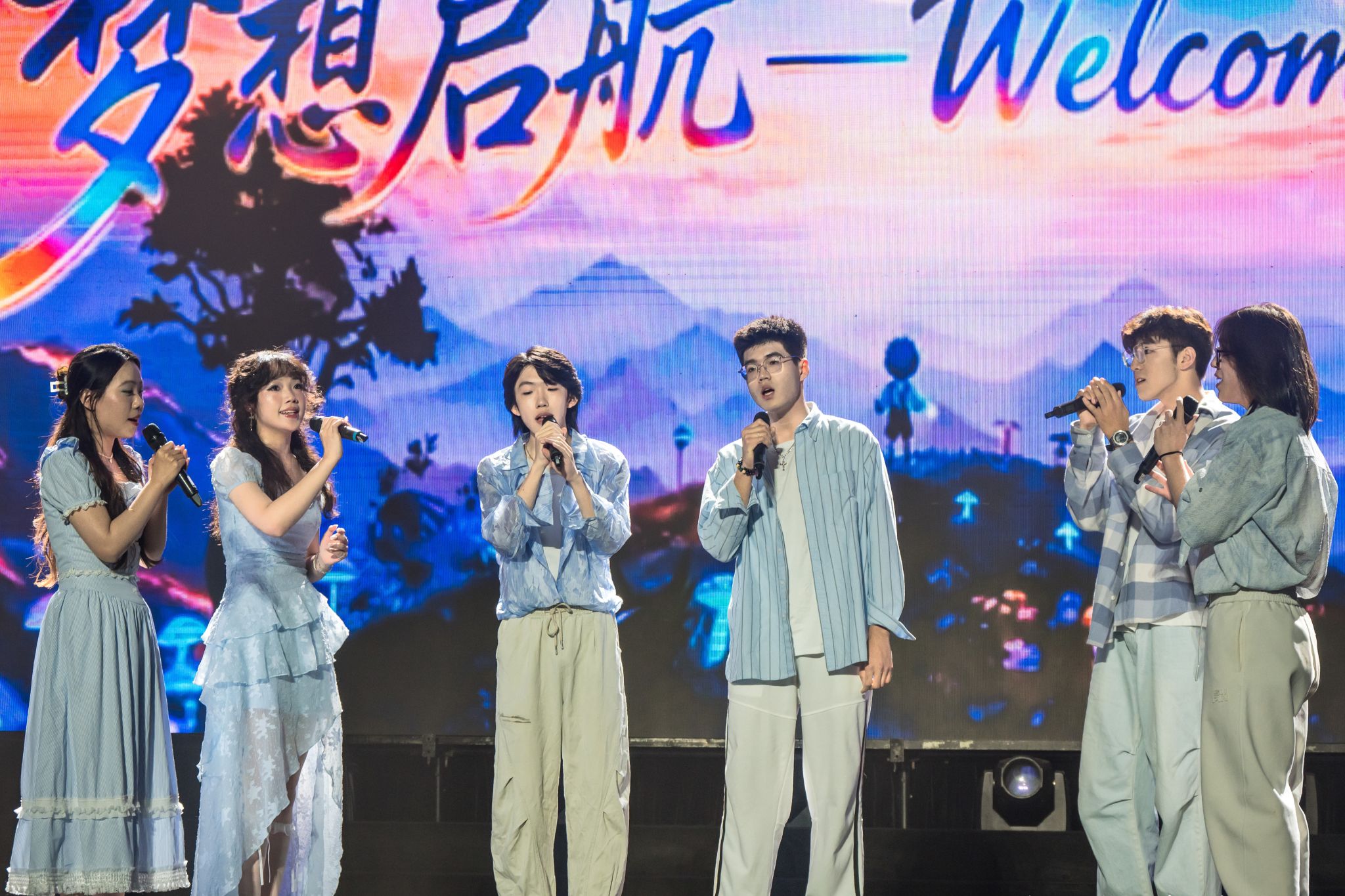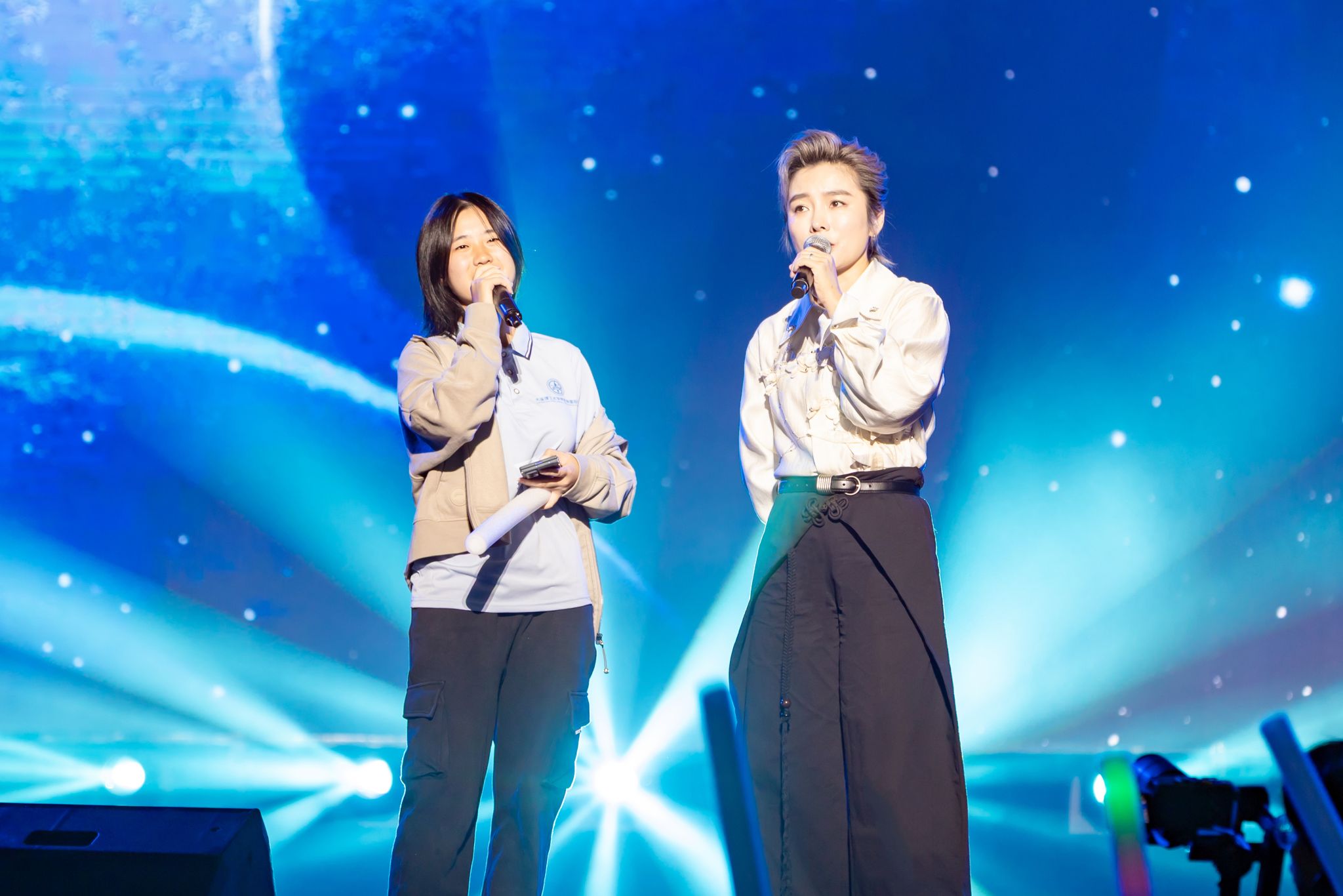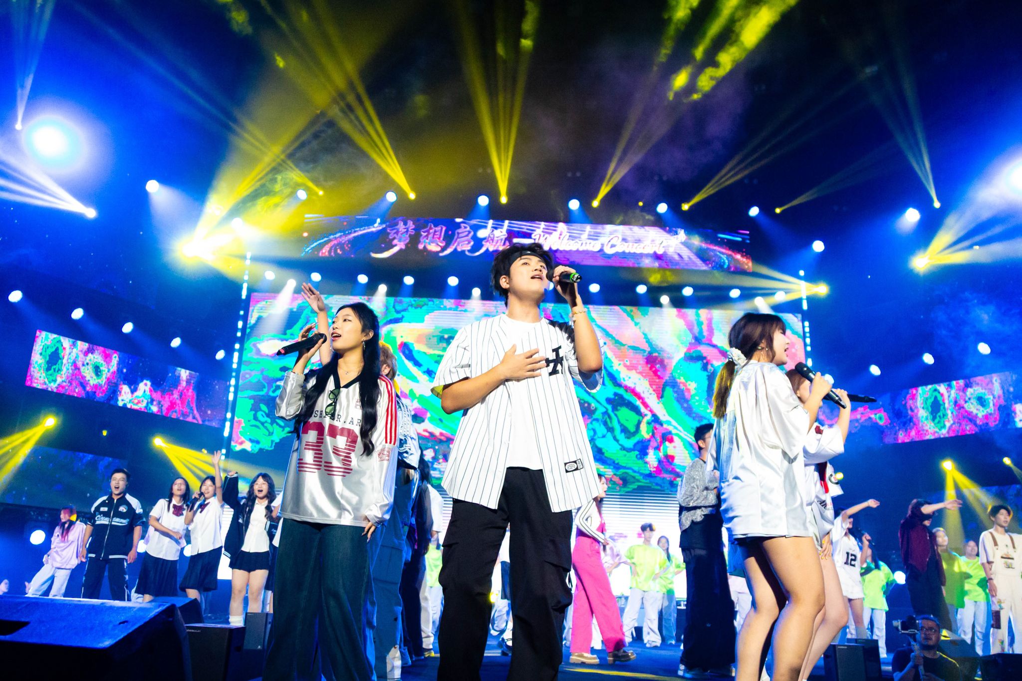 不同于往年传统晚会形式,本届迎新晚会以“全新升级”的演唱会模式焕新呈现。开场歌曲《麒麟》以中华祥瑞神兽“麒麟”为核心灵感,以大气磅礴的气场瞬间点燃全场,为演唱会拉开兼具文化厚重感与视觉冲击力的序幕。《最美的太阳》以嘹亮的歌声展现了校区学生社团的蓬勃活力,以“追逐光、成为光”鼓励新生始终满怀向上朝气。《住在心里的人》用温柔的旋律流淌出那些说不出口的感谢与想念。《稻香》用熟悉的曲调勾起对家乡与家人的牵挂,让初入校园的新生在旋律中感受温暖。