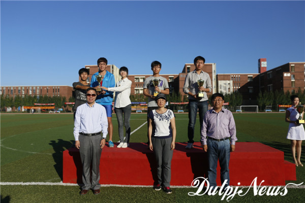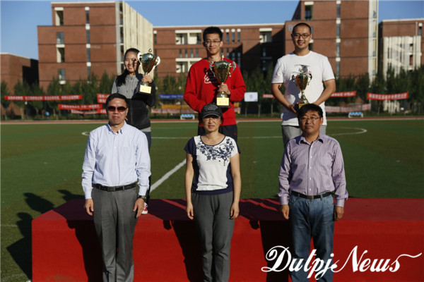 校区体育运动委员会秘书长、第二届田径运动会裁判长金若中宣读大会竞赛成绩,学生工作部副部长丁占英宣读学生优胜团体和教工优秀团体名单。校区领导刘志杰、贺高红、郭金明为获奖者颁奖。