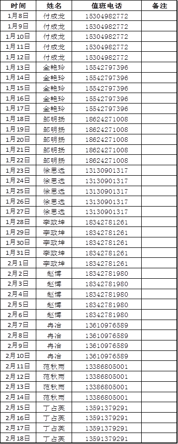 一、值班时间:2023年1月8日—2月18日,上午8:00-11:30,下午13:30-17:00。