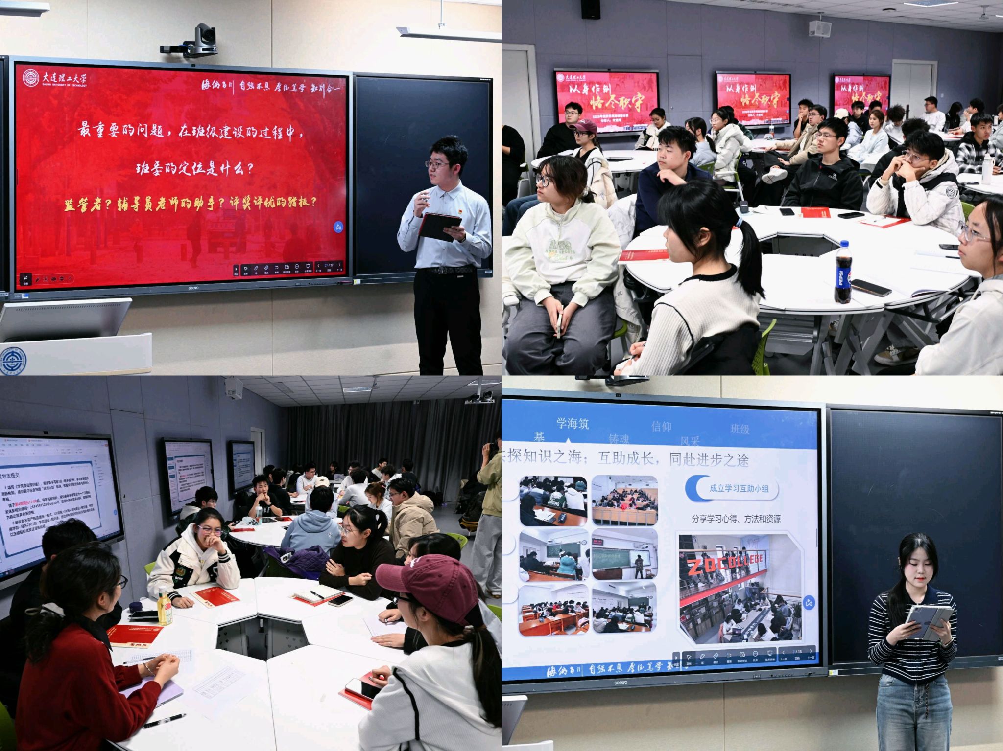 启动大会上,来自各学院的三个学风建设优异班级——过控2302班、经济2304班、能资2401班的代表依次登台作专题分享。三位代表围绕班级建设方法、实际成果与经验心得展开讲述,内容聚焦学习打卡机制、互助小组模式、学科答疑体系等具体举措。在随后的学委工作经验交流环节,各小组围绕班级学风建设实践经验、当前存在的困惑与问题、对校区学风建设的建议三个议题展开研讨,并选派代表作总结发言,交流深入、氛围热烈,为后续工作提供了真实且具参考价值的一线反馈。