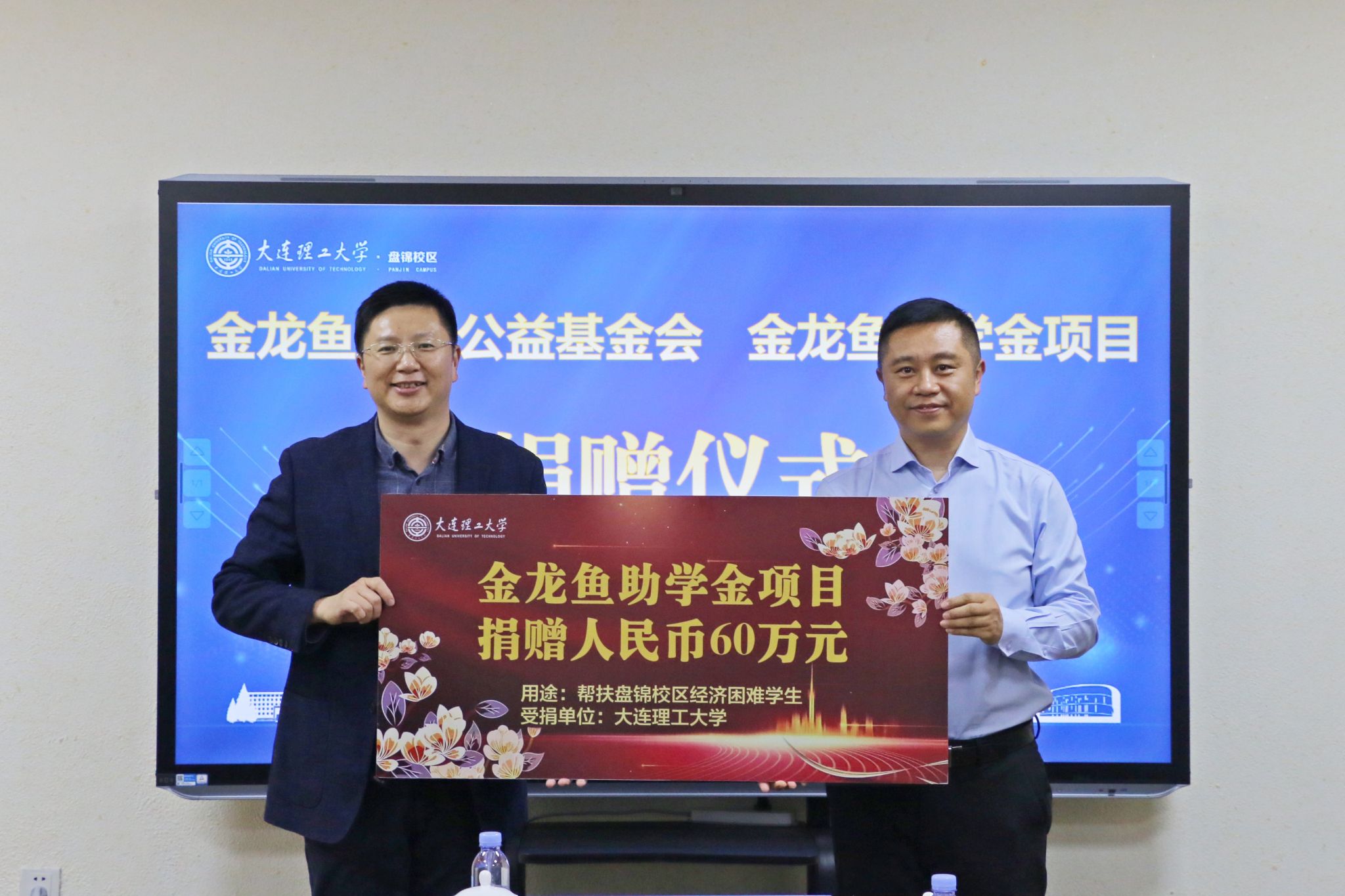 仪式上,郝继代表企业以及金龙鱼慈善公益基金会向大连理工大学捐赠60万元,占敬敬代表学校接受捐赠并为企业代表颁发捐赠证书。该项目主要资助盘锦校区家庭经济困难的优秀学子,鼓励支持学生专注学业和综合发展。