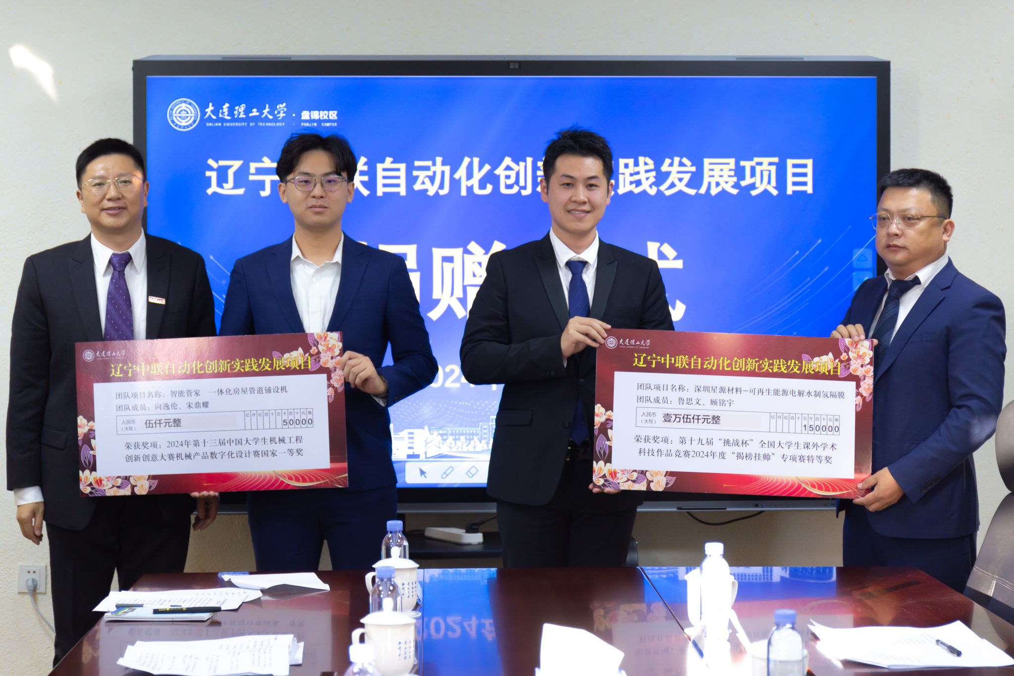 12月8日下午,辽宁中联自动化创新实践发展项目捐赠仪式在大连理工大学盘锦校区举行。辽宁中联自动化科技有限公司董事长任广众、董事长助理于环,大连理工大学校长助理兼盘锦校区管委会主任占敬敬,校区党工委副书记兼管委会副主任杨晓英出席捐赠仪式。学生发展与事务工作部相关工作负责同志、各学院教师代表、获奖团队学生代表参加仪式。
