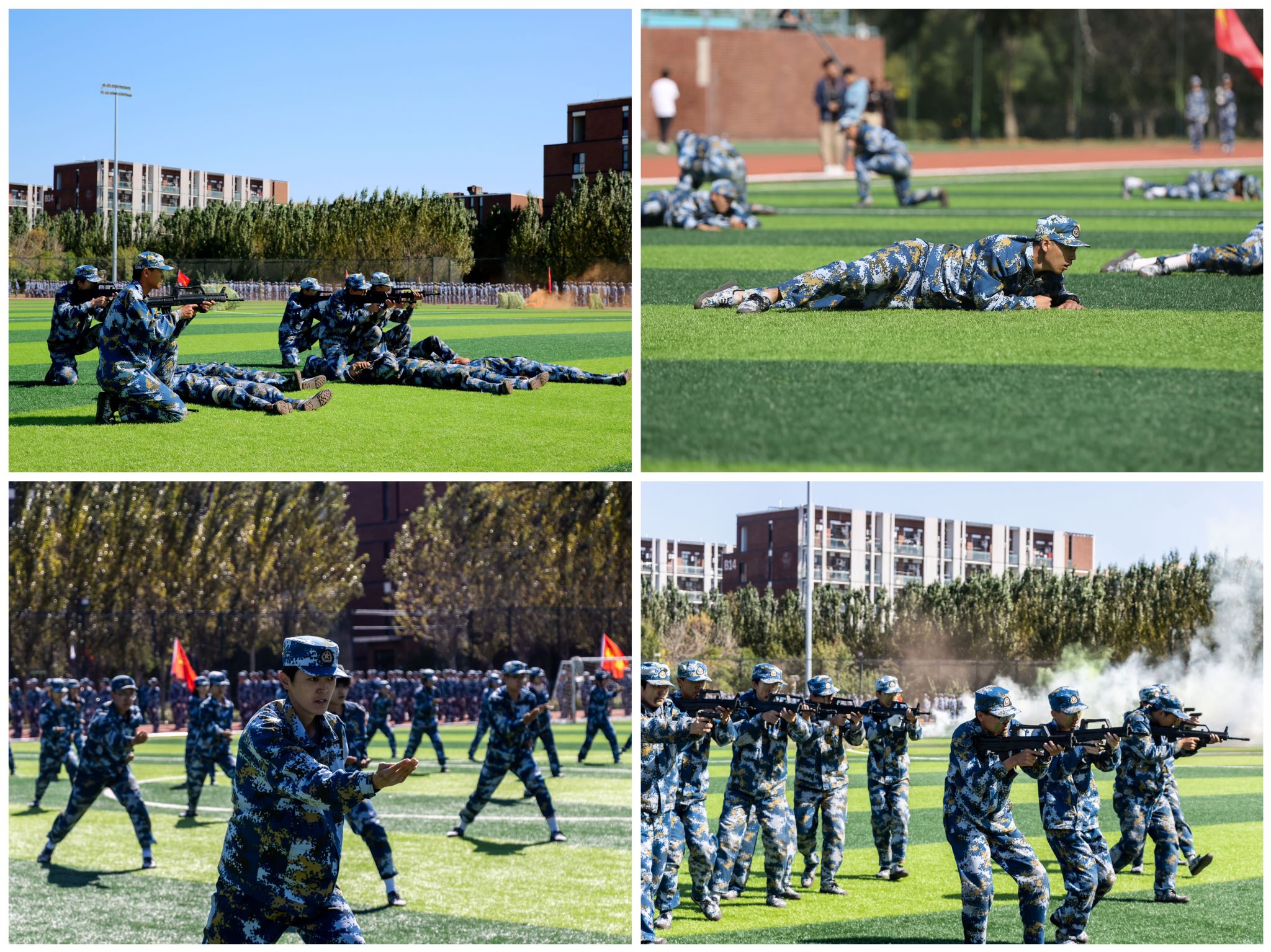 由新生队员组成的校区国旗护卫队率先登场,出色地完成了升旗仪式,拉开本次军训成果汇报大会的序幕。汇报表演过程中,教官与军训学员配合默契,擒敌拳表演气势磅礴,战术动作英姿飒爽,分列式队伍整齐划一、士气如虹,让在场的师生目睹了他们挺拔的身姿、整齐的步伐、蓬勃的朝气。2024级新生同学们用实际行动展现了新时代青年学子的风采,彰显了大工学子的优良作风。同时,大会还表彰了在军训期间表现突出的优秀个人、教官以及连队。