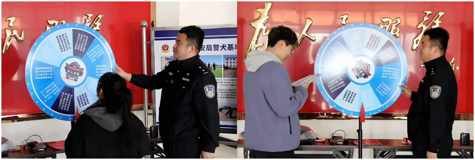 3月27日下午,校区与盘锦市公安局携手,共同举办了“金盾梦想•藏蓝青春”警营开放活动。本次活动在盘锦市公安局警犬训练基地举行,盘锦公安的警营开放小分队为我校23名师生代表带来了满满的“干货”,展开了一场精彩的“青春”联动。此次活动主要包含以下三个项目:防身技能传授、警犬互动、反诈知识竞猜。