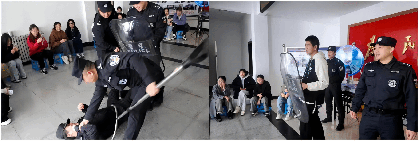 当面临突发危险时,如何有效保障自身安全极为关键。在活动进程中,特警们现场为师生传授徒手挣脱、擒拿格斗等防身要诀,并展示了棍、盾、叉等警械装备的交替运用战术动作。
