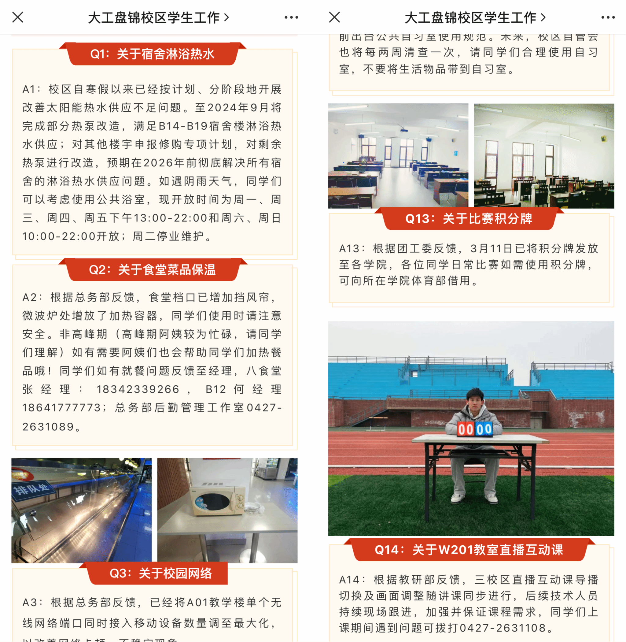 感谢同学们的问题反馈,也欢迎更多同学通过学情联席会反映生活和学习遇到的困难和问题。今后,学工部、教研部和总务部将在每月第一周周三下午继续召开学情联席会,用心用情服务校区学生,努力打通服务学生的“最后一公里”,推动办实事工作落地见效。