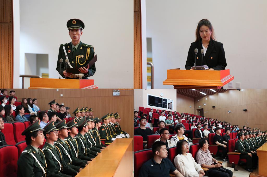 上午9时30分,校区E03报告厅内,在庄严的气氛中,参会领导将由军委政治工作部统一印制的张思德、董存瑞、黄继光、邱少云、雷锋、苏宁、李向群、杨业功、林俊德、张超十位英模挂像,郑重地交到了参会的校区国旗护卫队队员手中,全场响起热烈掌声。活动现场,同学们高喊“奋斗青春,国防有我”,用慷慨激昂的口号表达了当代青年砥砺强国之志、实践报国之行的决心。