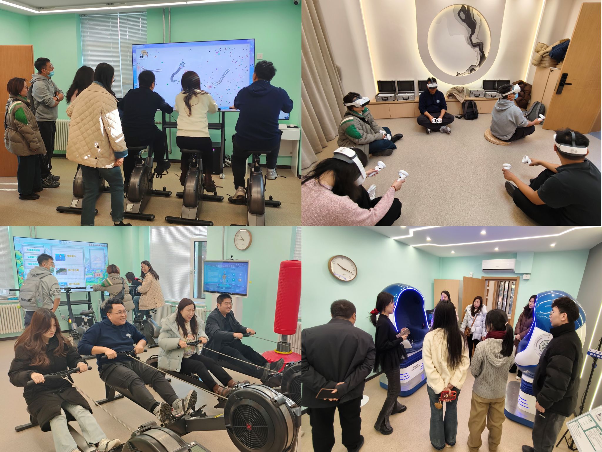 当天上午,在心理中心老师的带领下,辅导员老师们参观了现代数字技术赋能的自助心理训练中心。在专业健心辅导员的指导下,老师也亲身体验了正念冥想、音乐放松、情绪宣泄、专注力提升、安神助眠、运动舒压等系列自助式心理训练的专业设备,在体验的同时,放松身心、缓解负面情绪。