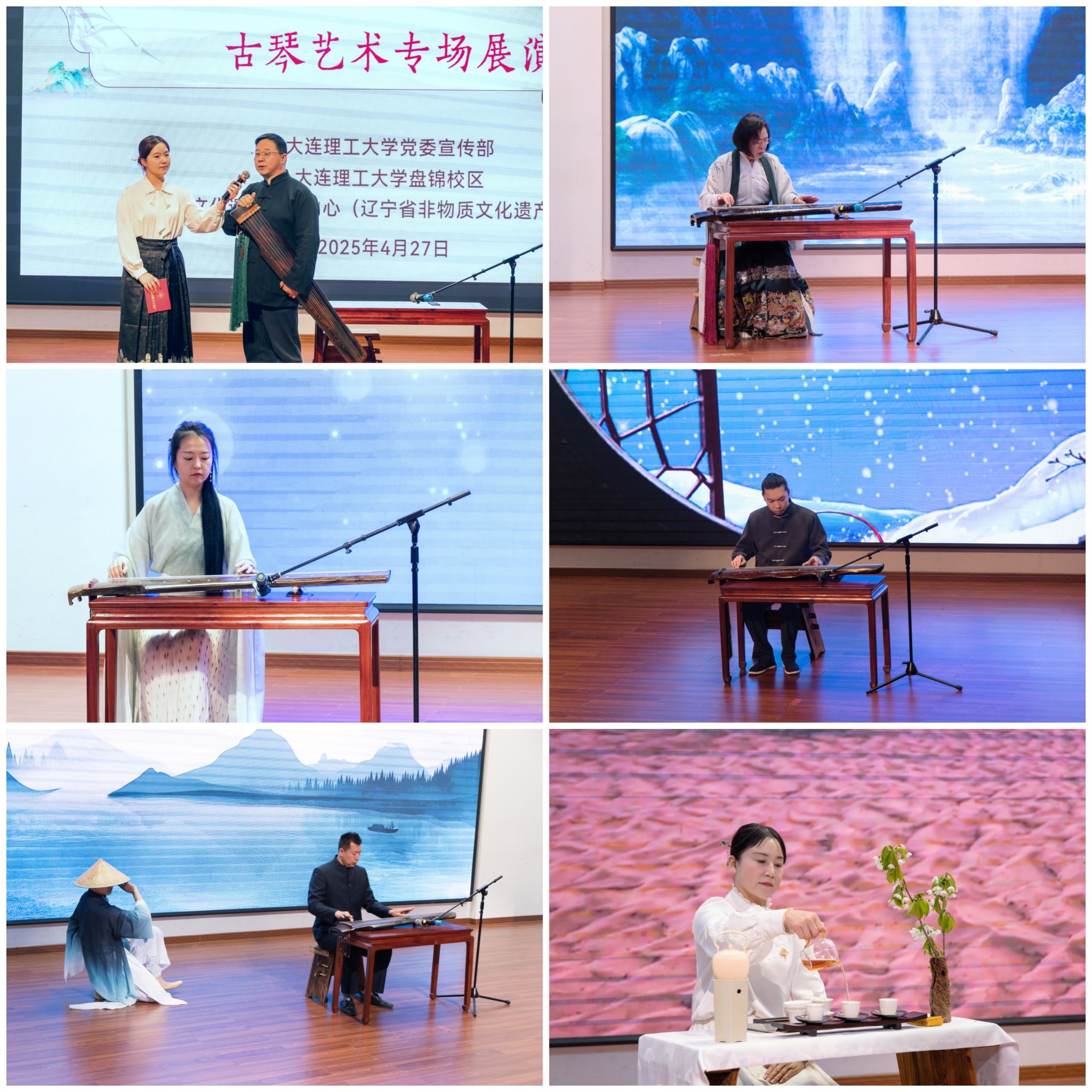 4月27日下午,由学校党委宣传部、辽宁省文化遗产保护中心(辽宁省非物质文化遗产保护中心)联合主办的文苑第81期:“琴韵传承 青春共鸣”古琴艺术专场展演来到盘锦校区,在校区学生文化中心报告厅举行。