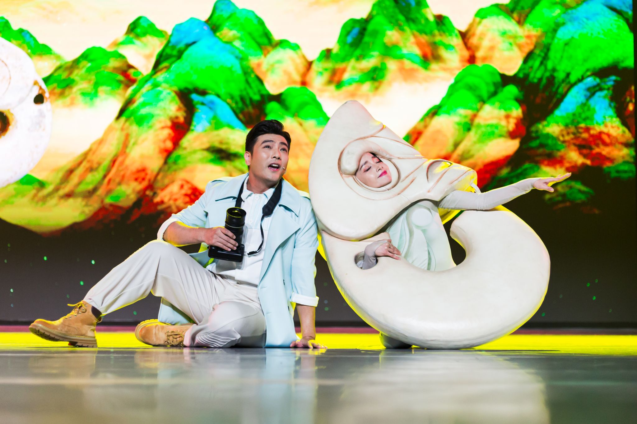 演出现场,以“山河长卷”为设计理念,通过多媒体视觉与舞台装置的结合,构建出山水、云月交织的时空场景;高度复刻文物纹样与时代服饰特征的唯美汉服,融合古调、吟唱与数字特效的音乐创作,给现场师生带来了沉浸式的观演体验。