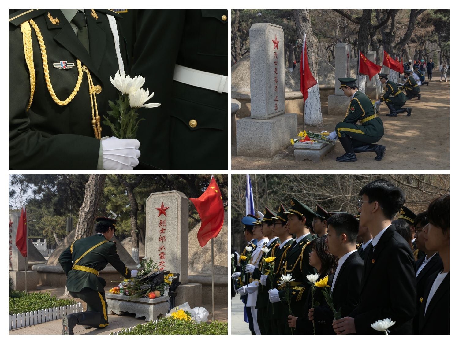 同学们在烈士的墓碑前静随工作人员的指引和讲解,了解到了那些为国捐躯的伟大战士们的英勇事迹。他们有序地为先烈们献上了由校区青年义捐的鲜花,每朵鲜花上都系着敬献人的姓名和寄语。