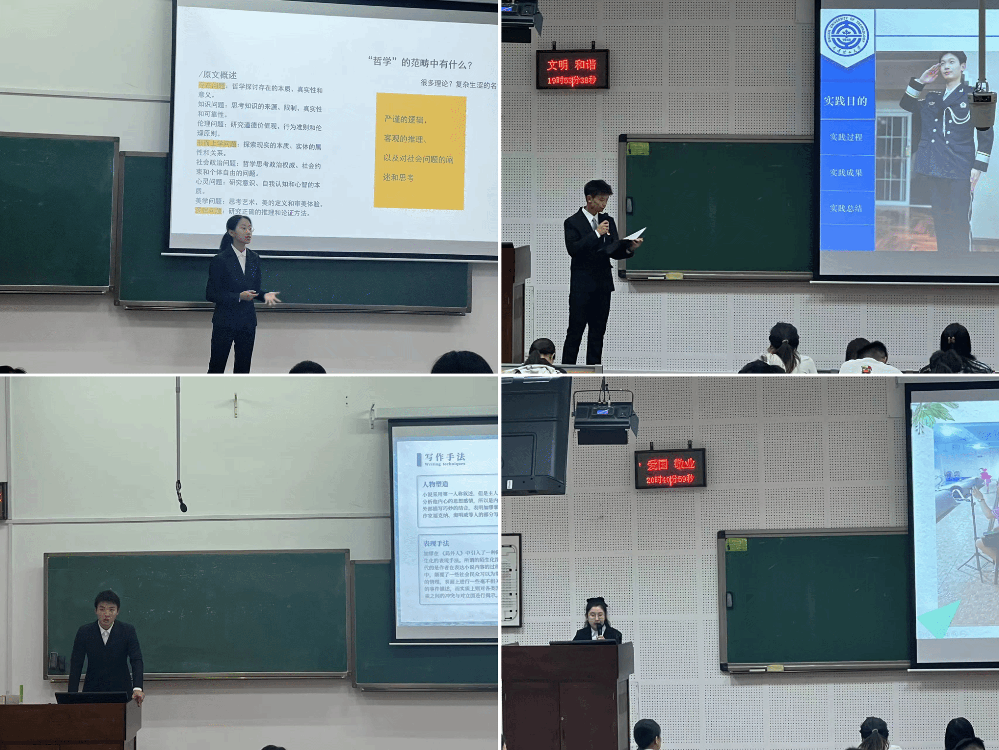 以行为鉴,讲述社会实践体验,用心融入社会,增长才干;发挥个人价值,不负青春。郑同学前往基层派出所,解决百姓问题,发扬人民警察的责任感和使命感,以青春力量,书写青年时代担当;刘同学走入乡村,调研乡村电商发展与建设,通过乡村振兴感受中国式现代化的深刻内涵;郑同学聚焦时代热点问题,开展反电诈宣传,组织观看反诈电影,提高电信诈骗防范意识。