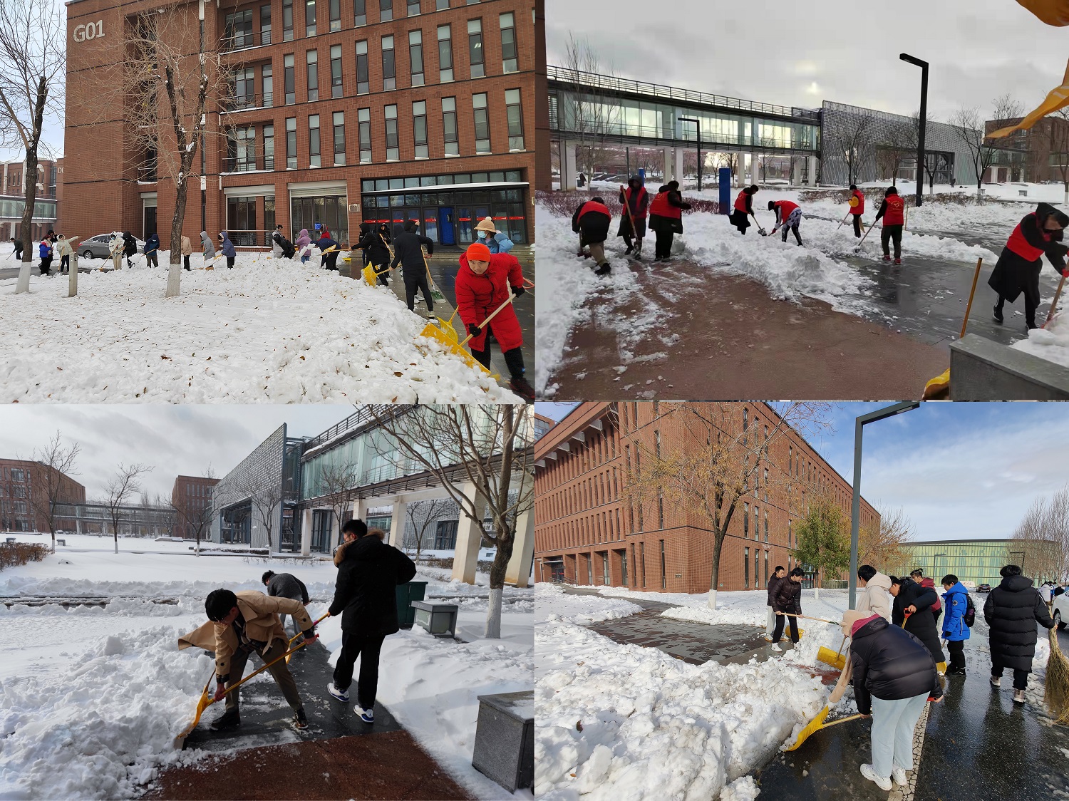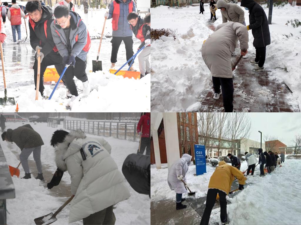 11月8日,盘锦市迎来极端恶劣天气,大雪随着寒风呼啸而来,皑皑白雪覆盖了整个校园,给盘锦校区披上了一层美丽的白纱。银装素裹的美景给大家带来欣喜与欢乐的同时,也给校区师生的出行安全带来了诸多隐患。为确保正常的教育教学秩序,在实践中做好劳动教育,校区学生事务办公室号召驻校区各学院、各学生团体积极组织学生志愿者开展除雪工作。