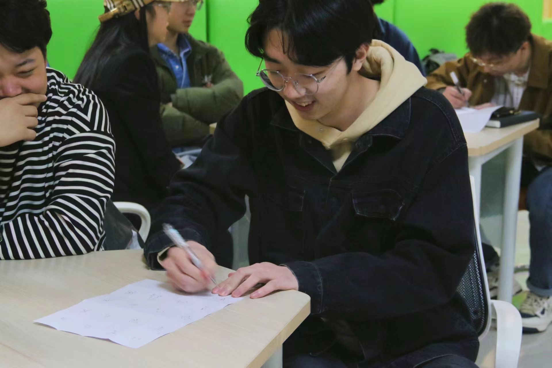 在“我画我猜”游戏中,同学们纷纷拿起画笔,尝试将那些象形文字转化为自己心中的图画,再通过猜谜的方式,去探寻文字背后的深意。这样的游戏不仅让同学们更加深入地了解了东巴文字的奥秘,更让他们在轻松愉快的氛围中感受到了传统文化的魅力。