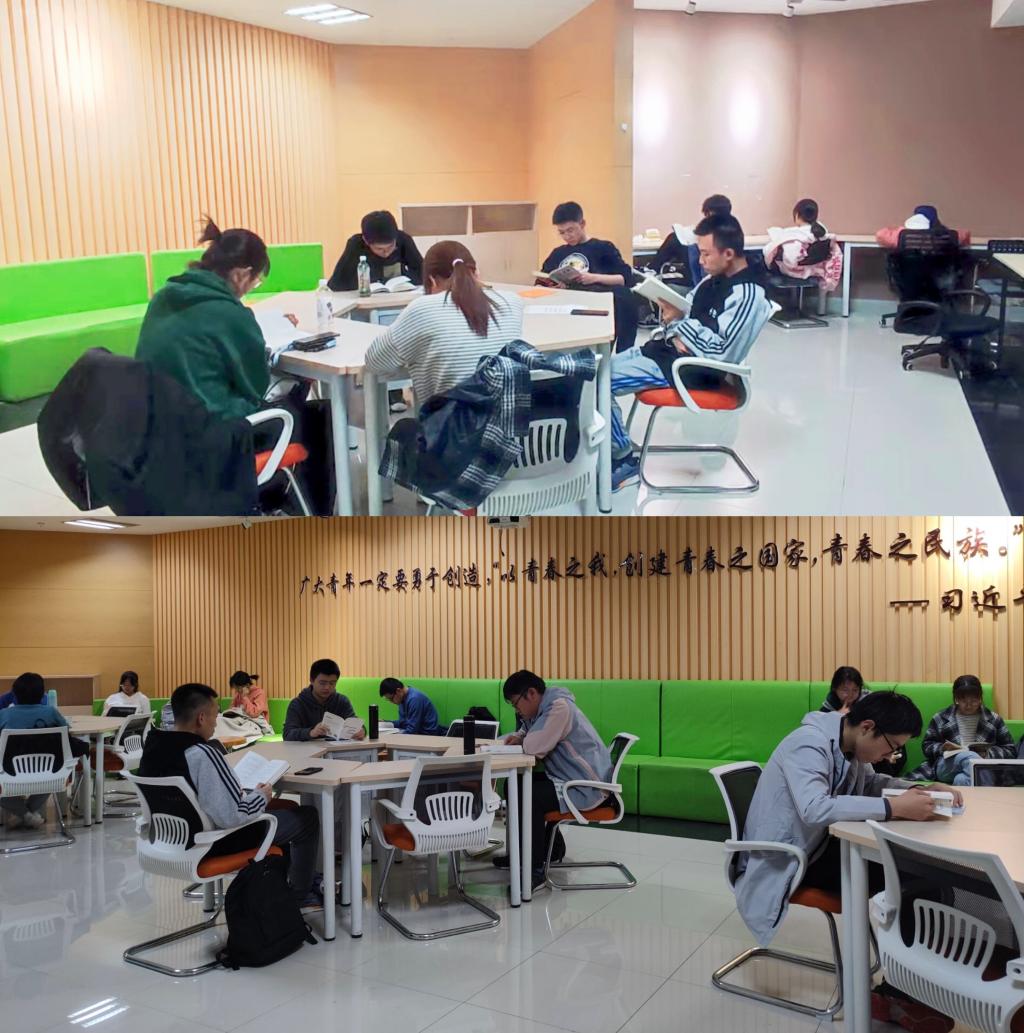 叶落花谢,浅冬初至,初雪落人间,书本伴长夜。秋去冬来,由校区学习部主办的第十九期“21天读书习惯养成计划”第六十五期“茗韵读书会”伴随着指尖翻阅素纸声缓缓落下帷幕。参与的同学们于每晚18:00-22:00相聚于校区F05二楼大厅静心阅读,亦于线上读书打卡、书写感悟。二十一天,品茗夜读,笔墨抒情,觅爱书以阅;茗韵书会,共赏典籍,以书会友,择好书以享。