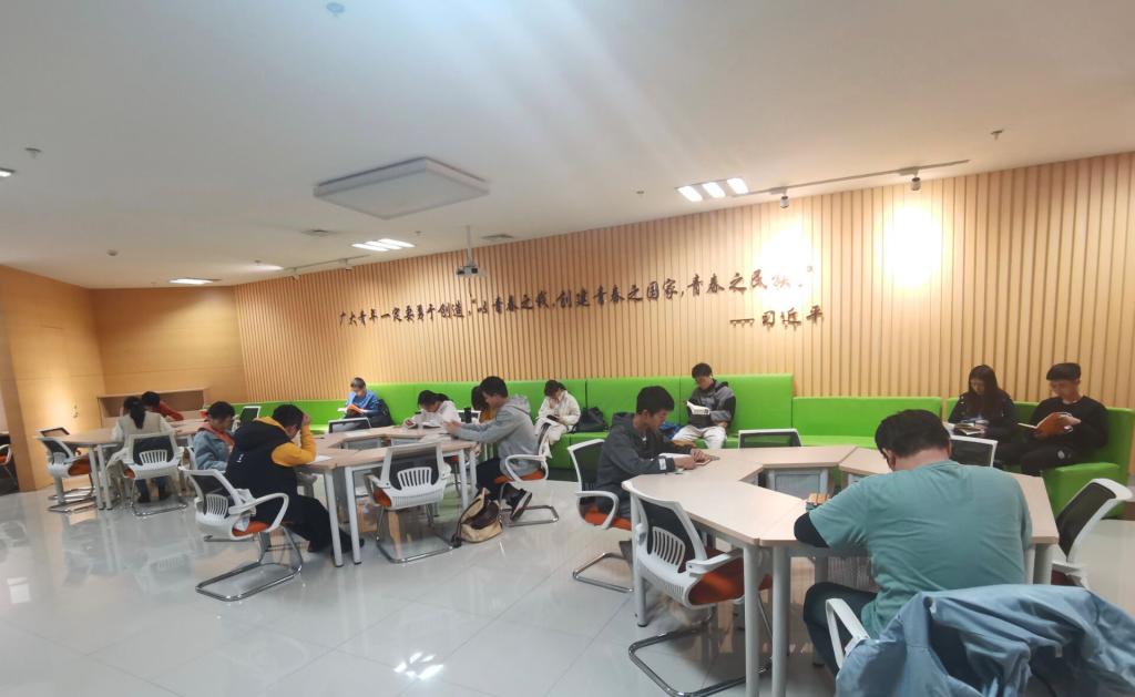 银河迢迢,星月当空,同学们便披秋风而来。入口签到,入座阅读,书页轻启,思绪纷飞。文字叩击着心扉,思想激荡于脑海。窗外星河长明,冷风簌簌;屋内灯暖风熏,书香袅袅。阅读一小时即为打卡成功,扉页轻合,起身签退,便挥别书友,踏月而去。待同学散尽,值班人员总结当日打卡率,附上摘抄与鼓励,一路作陪,助力习惯养成。