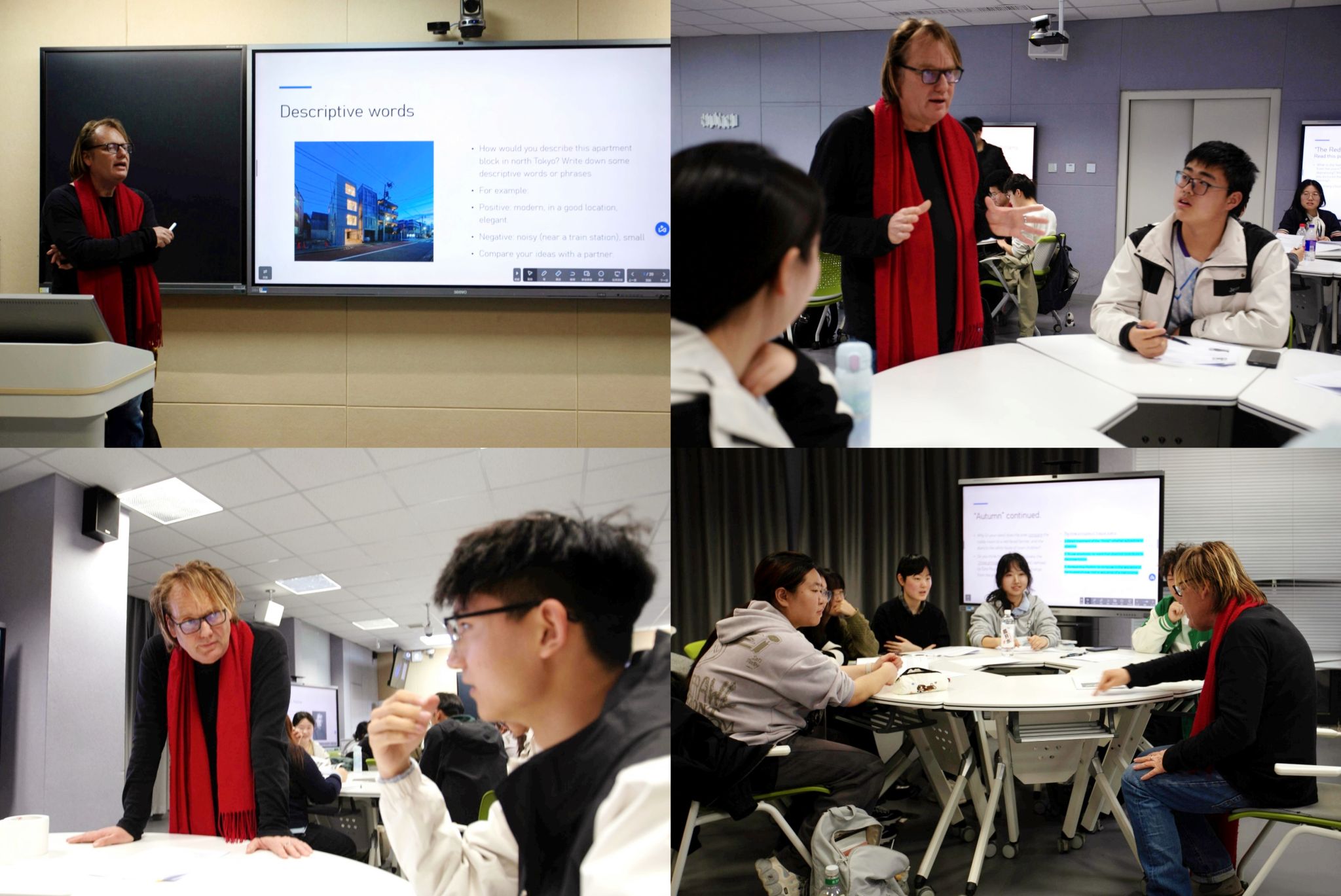 活动伊始,Clifton老师引导参与者通过想象构建意象空间,在脑海中勾勒理想的居所与场景,以此作为进入诗歌意境的切入点。在词汇解析与图像辅助下,同学们对诗歌文本进行了细致研读,并围绕核心议题展开小组讨论,现场讨论气氛热烈。