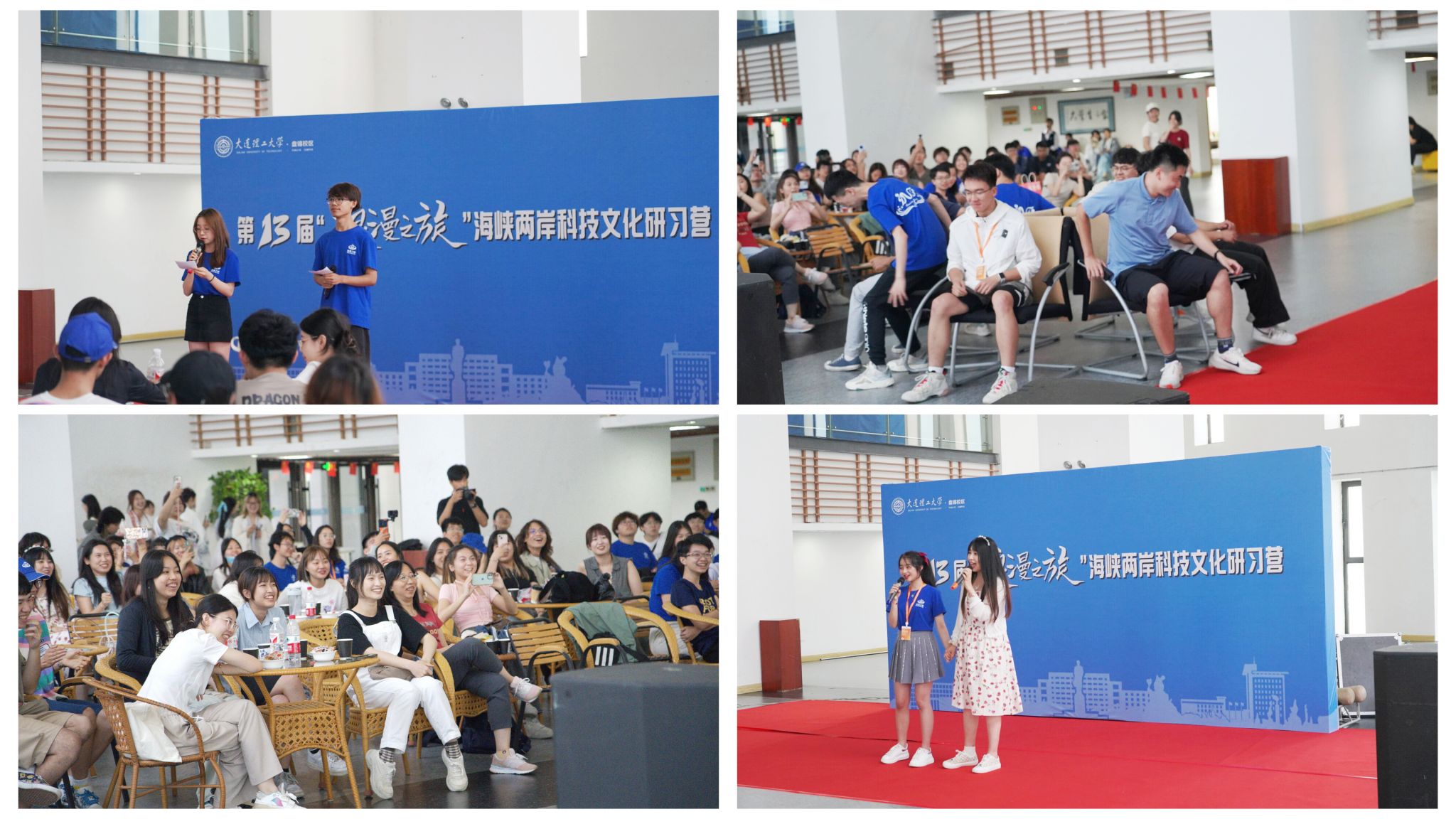 日暮的余晖洒满校园,结束了一天的参访,两岸营员齐聚E02大学生活动中心大厅。在这里,一场由盘锦校区同学精心策划的文艺晚会拉开序幕。各式表演轮番上场,音乐声声不息,舞蹈活力四溢,汉服走秀的倩影在灯光下翩跹起舞,两岸青年的即兴表演更是赢得了观众的声声喝彩。营员们在欣赏晚会节目的过程中,也踊跃参与一系列破冰小游戏,每一次尝试和互动都促进了双方的心灵交流与情感交融。