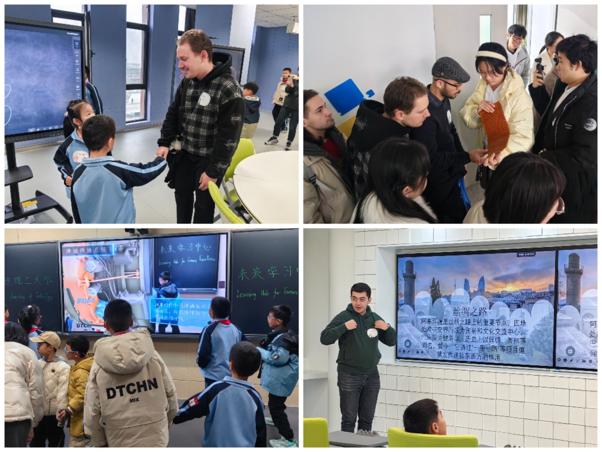 聚焦“教育新科技”,孩子们与留学生们一同踏入了未来学习中心与智慧教室,体验虚拟现实的奇妙世界。未来学习中心关于活字印刷术、摩斯密码、电子图书馆的精心设计,智慧教室中的互动白板、远程教学系统,激发了孩子们对未来学习方式的好奇与憧憬。