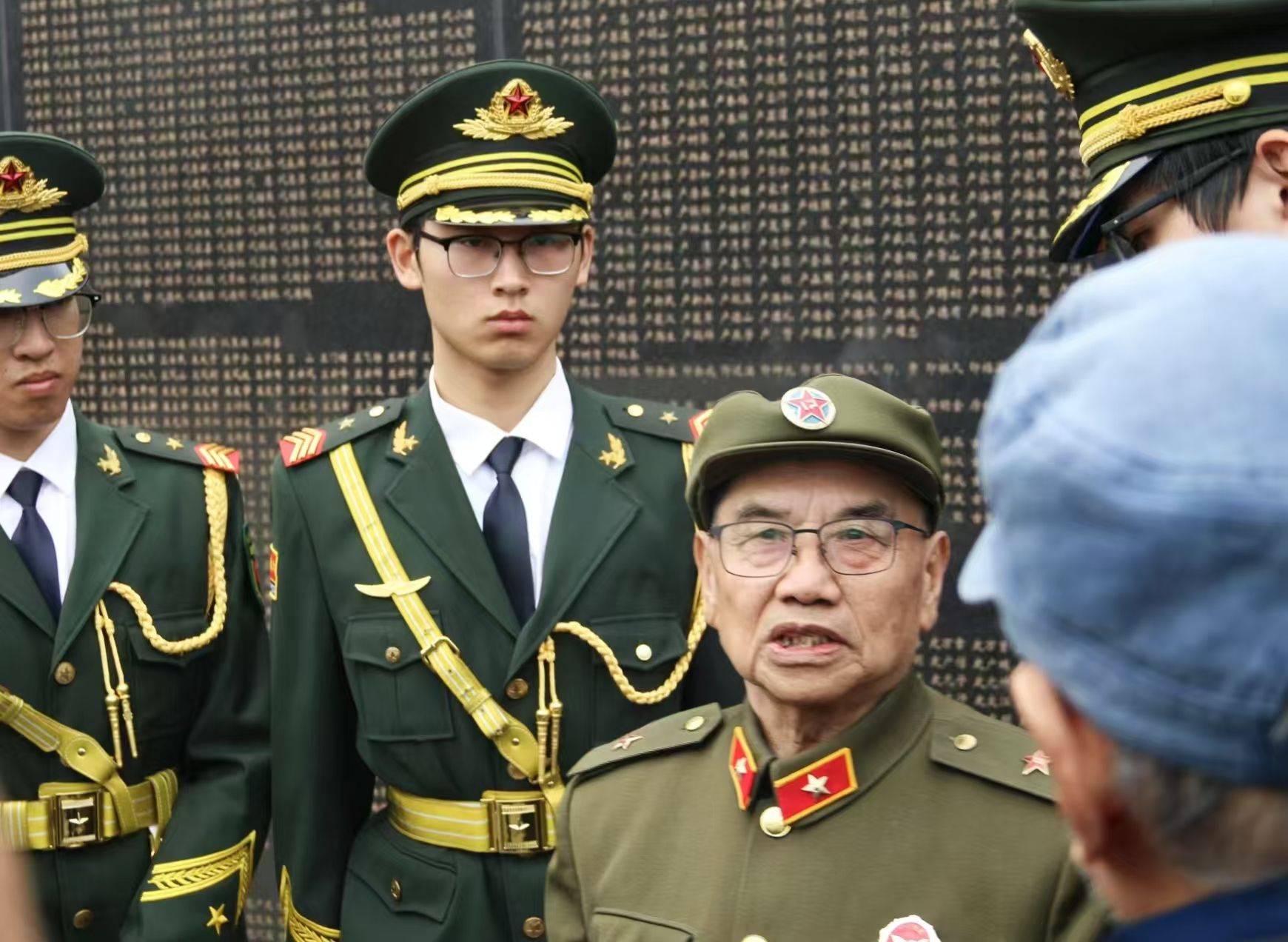 在烈士墓碑区,国旗护卫队队员代表校区师生逐一敬献鲜花、擦拭墓碑。随后,师生们参观了抗美援朝纪念馆,通过珍贵的历史文物和影像资料,重温那段可歌可泣的峥嵘岁月。在镌刻着19万余名烈士姓名的英名墙前,同学们驻足凝视,认真聆听志愿军老战士讲述的战斗故事,深刻感悟革命先辈的英勇事迹。